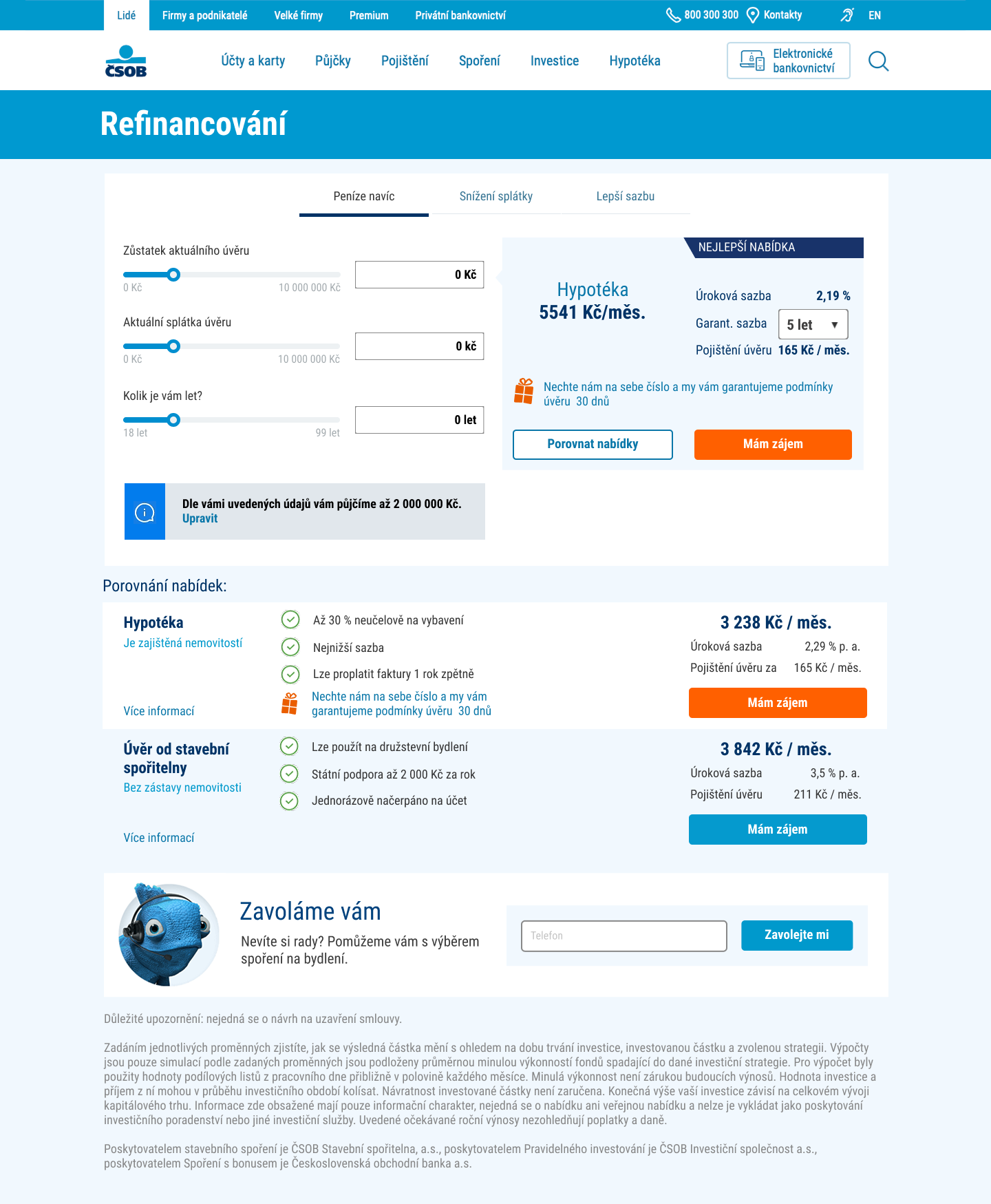 ČSOB - Interaktivní nástroj pro refinancování pomocí porovnání produktů