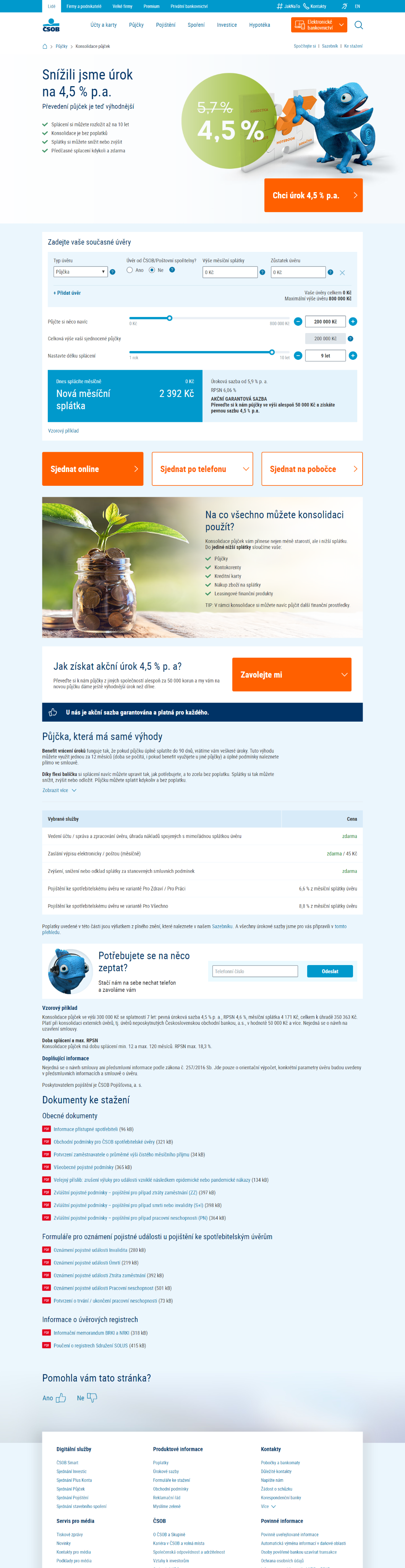 ČSOB - Interaktivní nástroj pro sloučení půjček a výpočet úspory