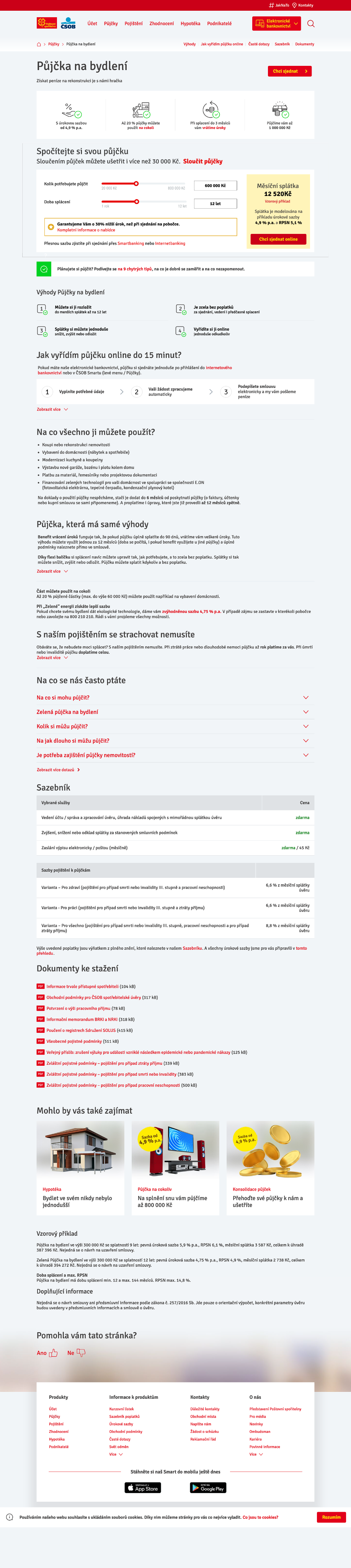 ČSOB a Česká spořitelna - Nástroj pro výpočet půjčky na bydlení